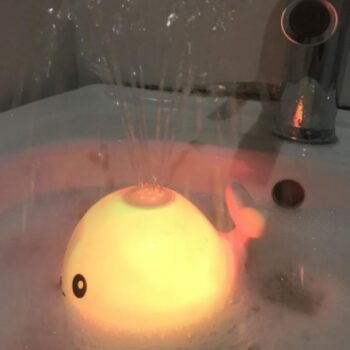 Let me start by saying that I am absolutely in love with this little whale! I’ve even taken a bath with it by myself it’s so darn cute! I bought this for my 18 month old son who just adores bath time, but always wants to keep the faucet running so he can play in the steady stream of water. Of course, that meant we had to periodically drain some water from the tub as is began to fill up too high, and the amount of water that was being wasted as a result was bumming me out! I thought this would be the perfect solution as he would still have a steady source of flowing water to play in and it wouldn’t be wasting down the drain! This whale did exactly as advertised! We didn’t have a problem with it not turning off when lifted from the water as other reviewers mentioned. The fountain of water peaks at about 7 inches which is the perfect height for him to play in, but not so high that it will come out the sides of the tub. After such a glowing review, I’m sure you’re wondering why I only gave it 4 stars. Well, it turns out that my son is absolutely terrified of this whale! He’s alright as long as we hold its tail so that it doesn’t float around, but as soon as we let go and the whale starts moving around the tub he goes to screaming. I’m sure he’ll warm up to it eventually as he does love playing in its fountain as long as we’re holding it! I would absolutely 100% recommend this bath toy to anyone who asked!