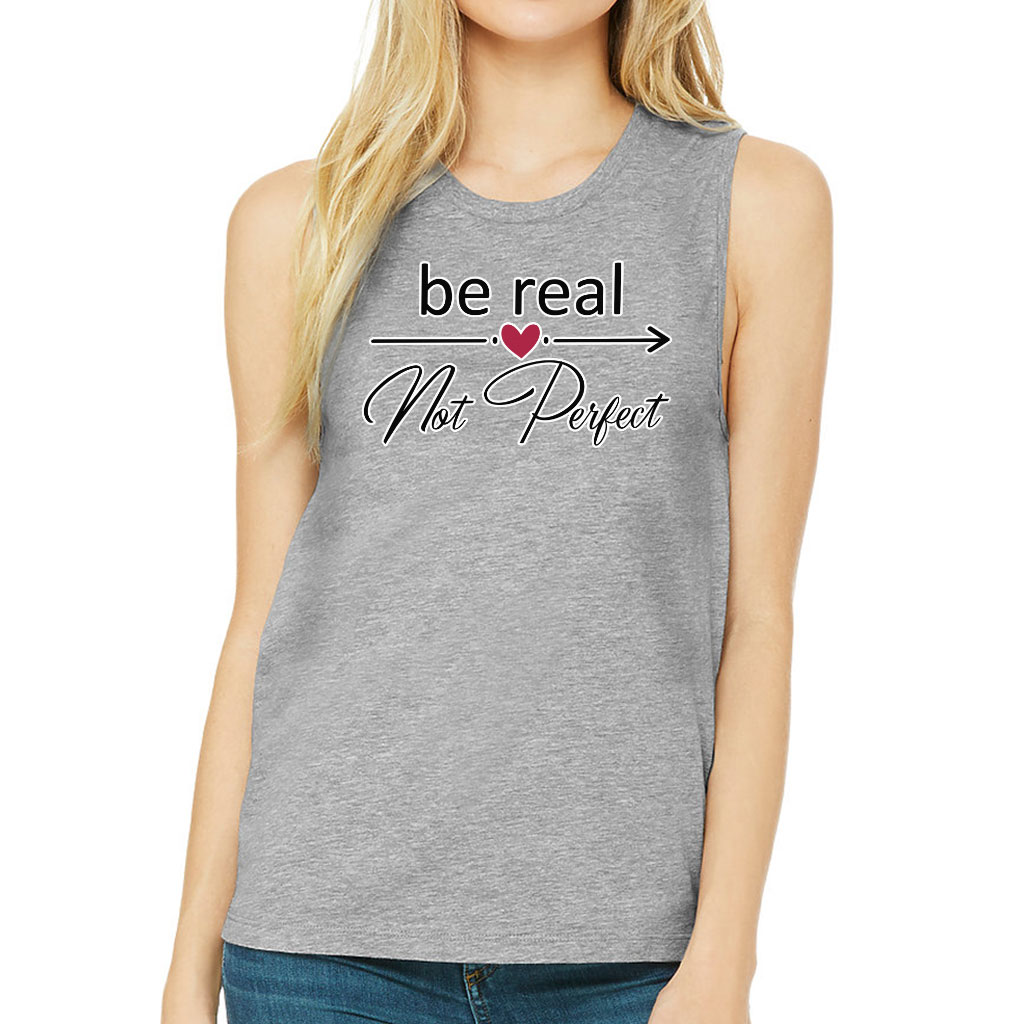 Be Real Women’s Muscle Tank is made from high-quality materials. The soft fabric fits perfectly to the body and suits any type of figure. Our products will make your everyday comfortable, as well as add charm to your image and emphasize your style.