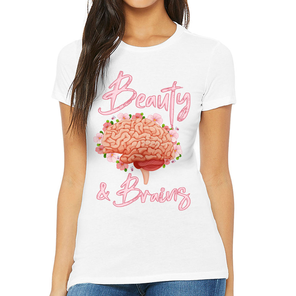Beauty and Brains Slim Fit T-Shirt – Floral Women’s T-Shirt – Illustration Slim Fit Tee