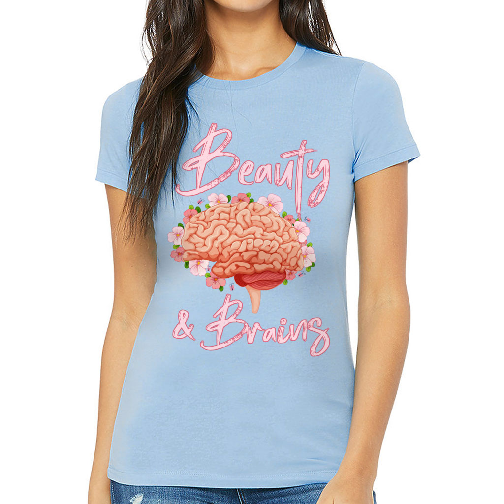 Beauty and Brains Slim Fit T-Shirt fits like a well-loved favorite, featuring a slim feminine fit, crew neck, short sleeves and superior combed and ring-spun cotton. This t-shirt feels amazing all day long. Our products provide the highest standards of quality and comfort.