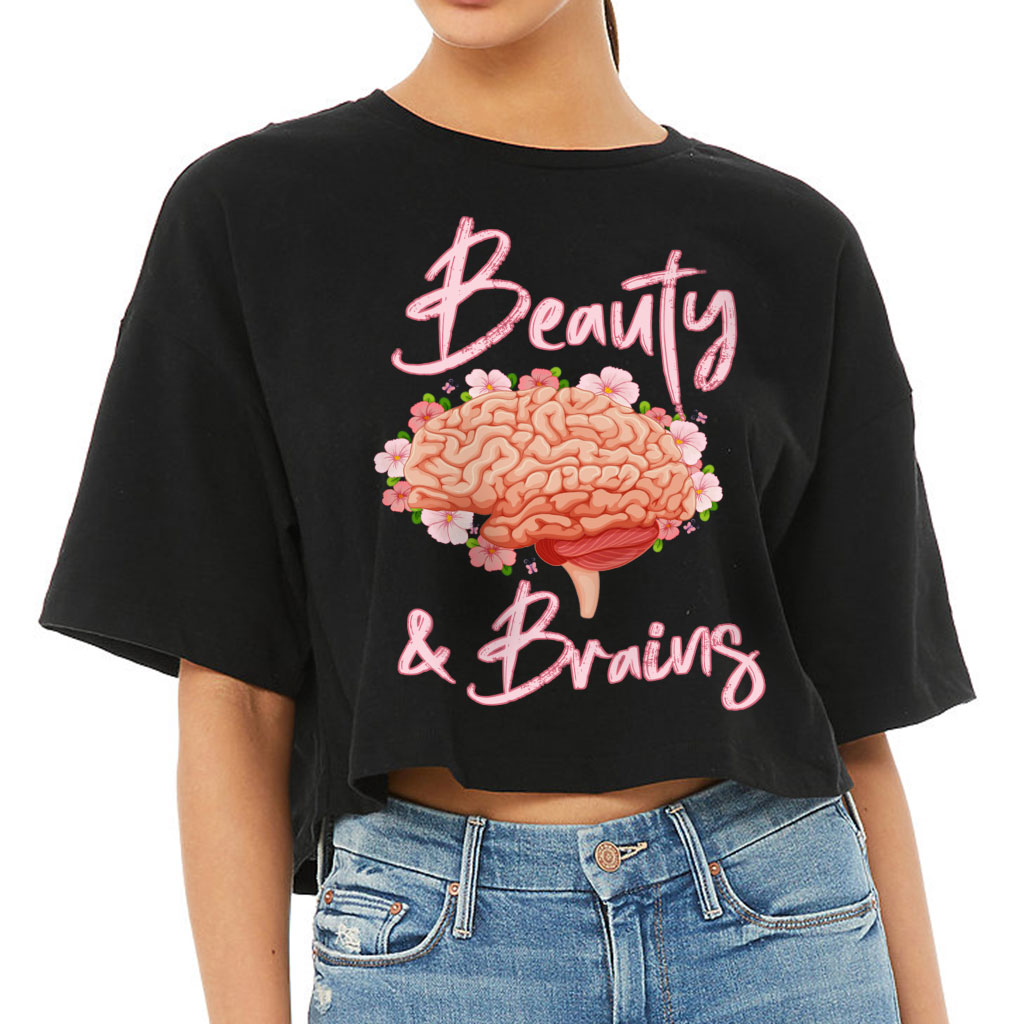Beauty and Brains Women’s Crop Tee Shirt is sure to make you stand out in a crowd! Match this shirt with shorts, jeans, leggings, sweatpants or skirts. Suitable for spring, summer, fall, winter, and all year.