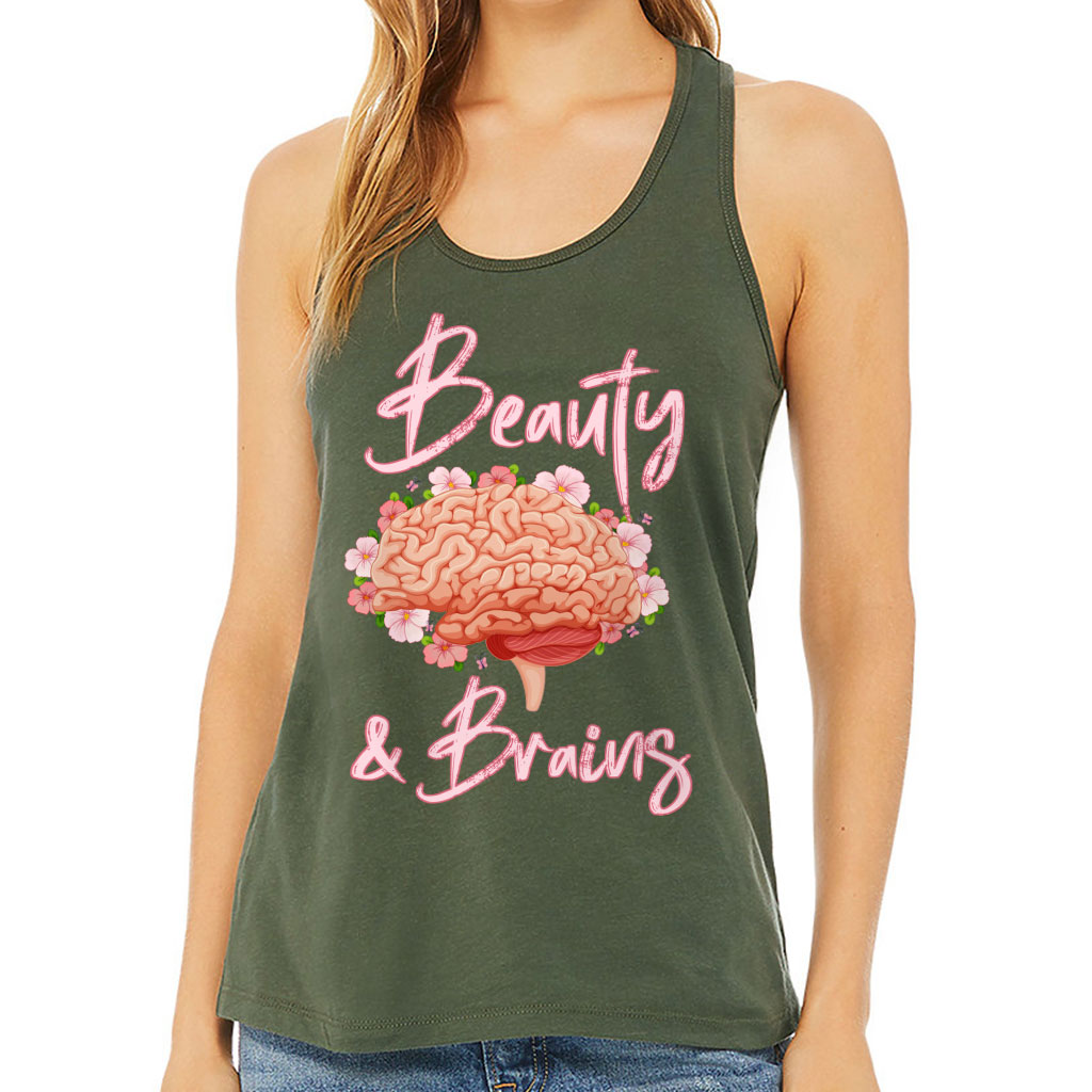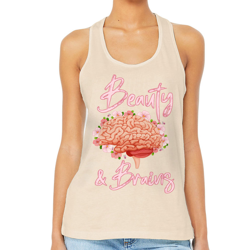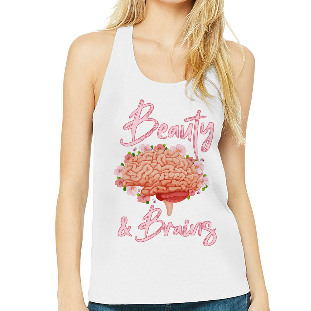Beauty and Brains Women’s Racerback Tank features a flattering racerback, relaxed fit. Wearing our ideal racerback tank, women will feel the ultra-softness of cotton. This product never disappoints if you want a piece of clothing to feel cool and comfortable at the same time.