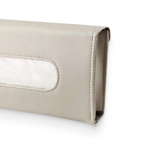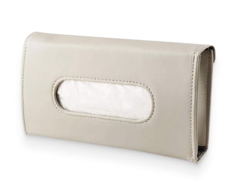 From your sun visor to backseat pocket, our Beige Polyurethane Tissue Box Cover is designed with sleek clips for easy transportation.