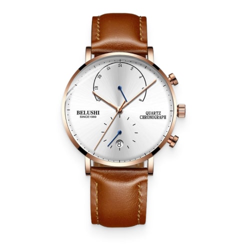 This watch has been produced with the best materials: authentic leather and stainless steel. Durability and ease in usage, nice to meet you!