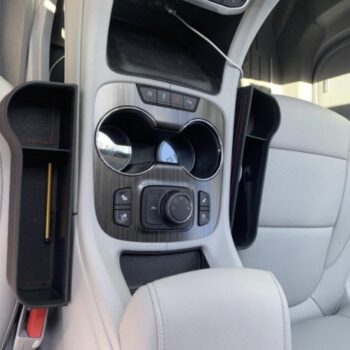 Each organizer features a phone slot, charger hole, drink holder space, and card slot for organized storage.