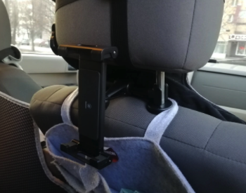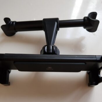 This is really easy to install, and works well with smaller headrests. It is a little hard to pull the arms apart with one hand while you hold the tablet if you need to fully extend the arms.