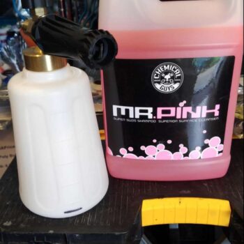 Works great with three different products I’ve tried... Griot’s Foaming Surface Wash and MR. Pink Super Wash. 2-5oz of product is all you need depending on how much suds you want, topped off with warm water. Half full bottle will give you at least one good solid covering, full bottle will give you two washes. Do have some concerns about plastic bottle and brass connection over time, but it is what it is. Solid construction in the canon itself!! Can’t beat the price or value!!!