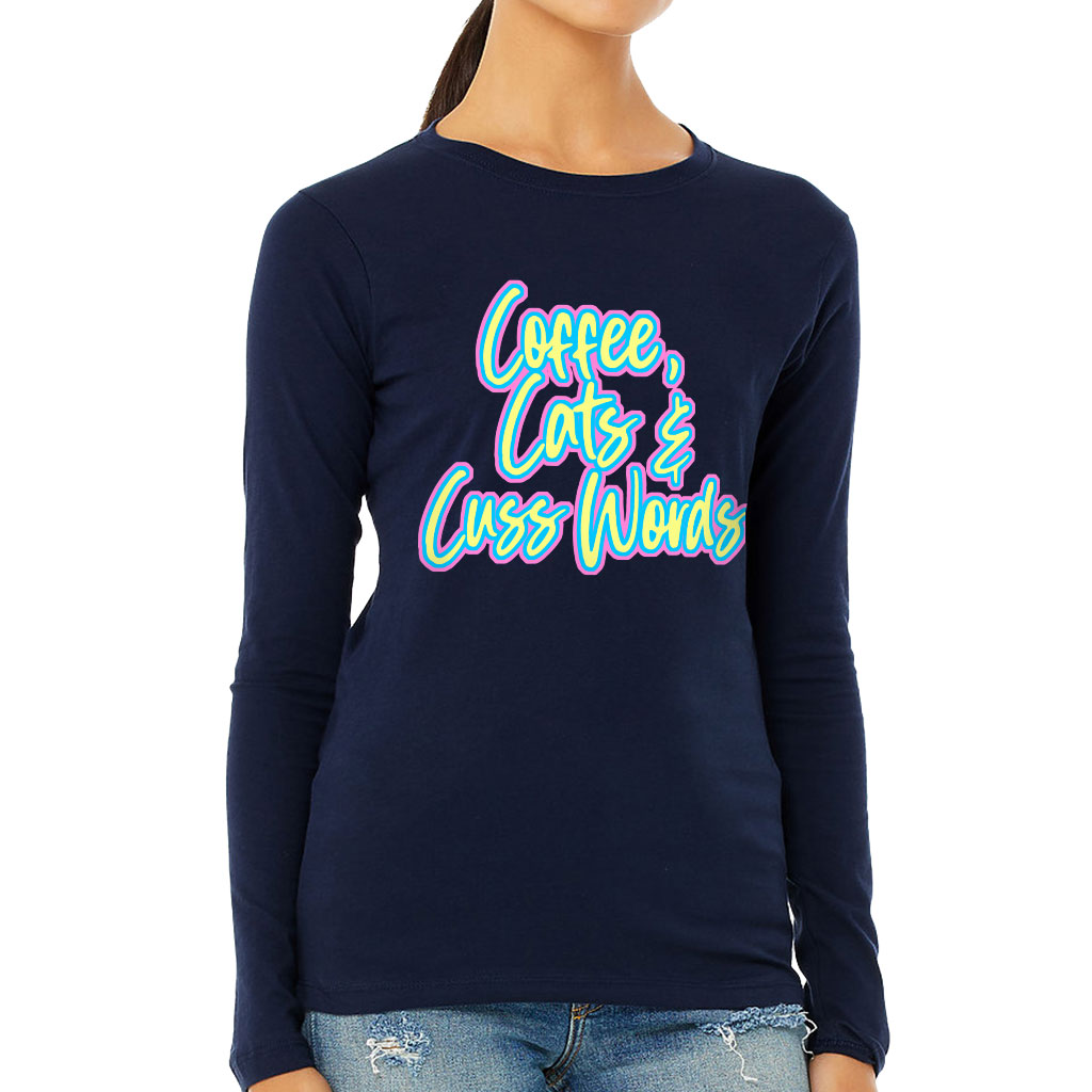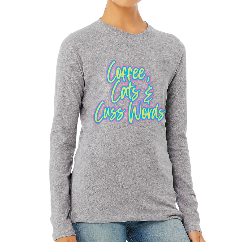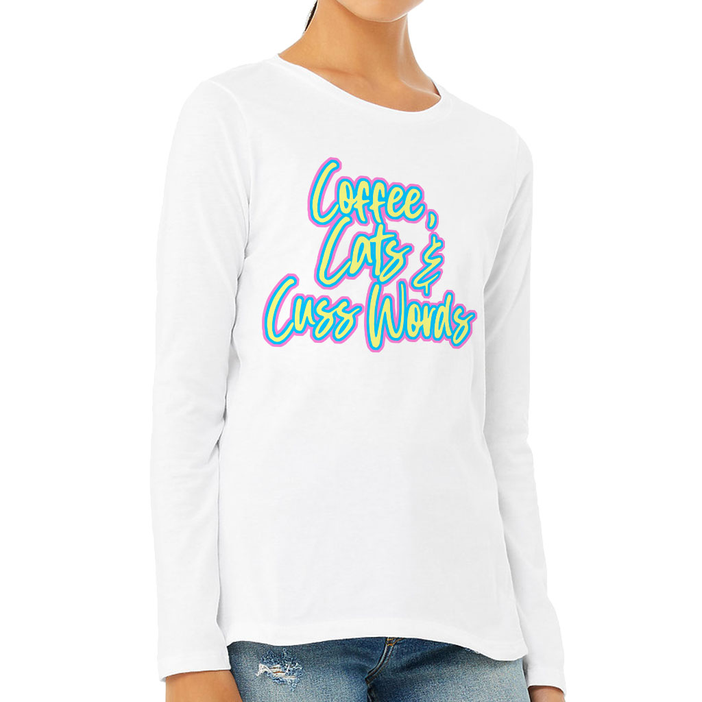 Cats Coffee Cuss Words Women’s Long Sleeve T-Shirt – Funny Long Sleeve Tee – Trendy T-Shirt