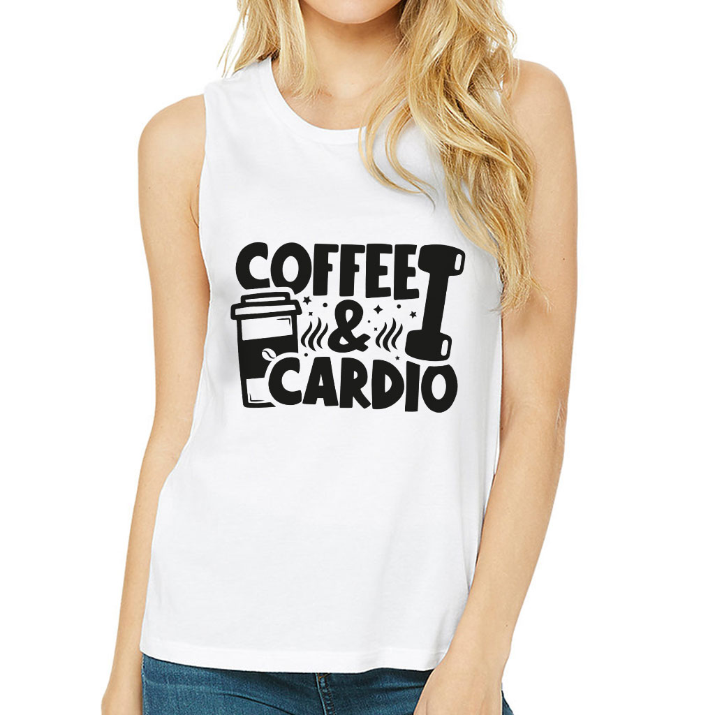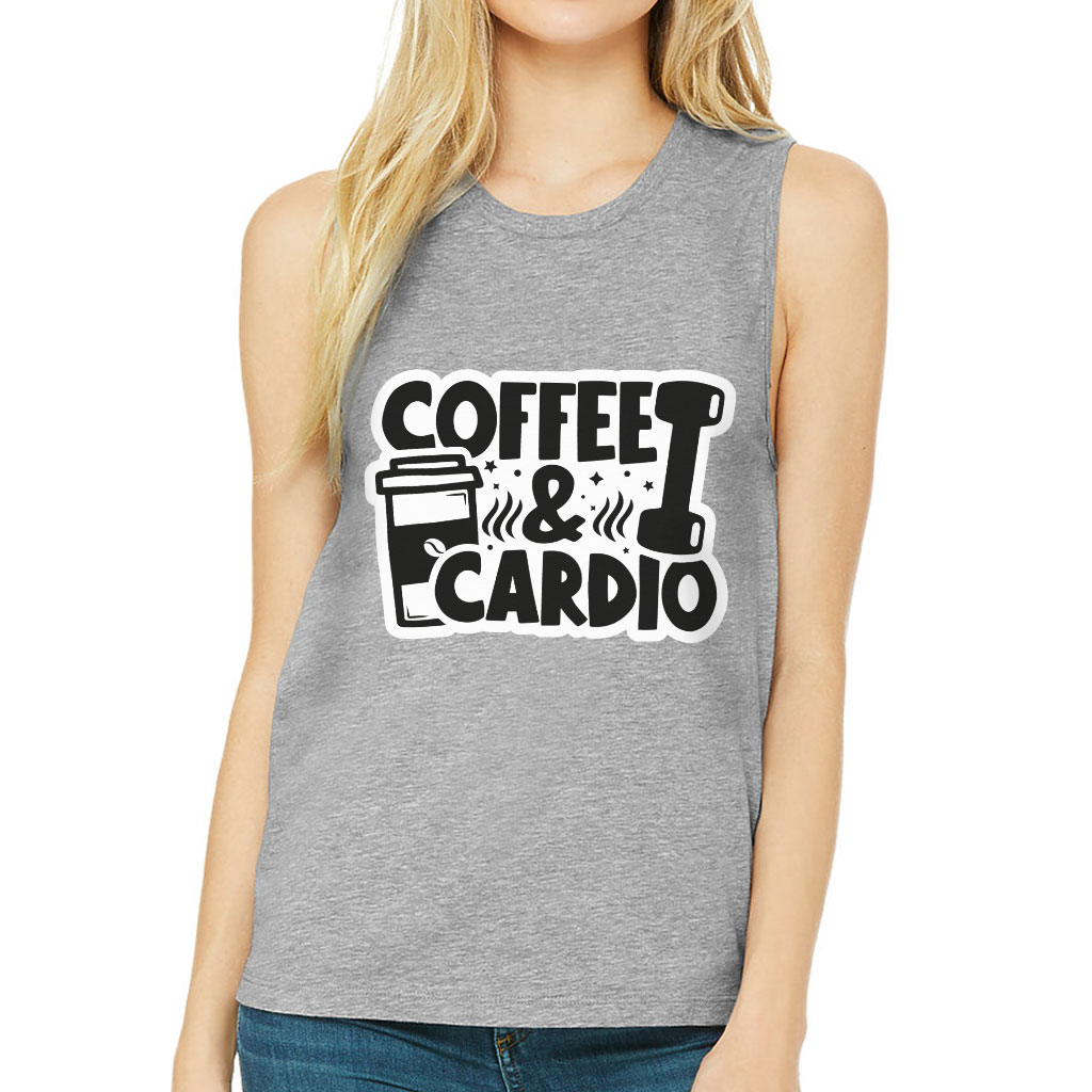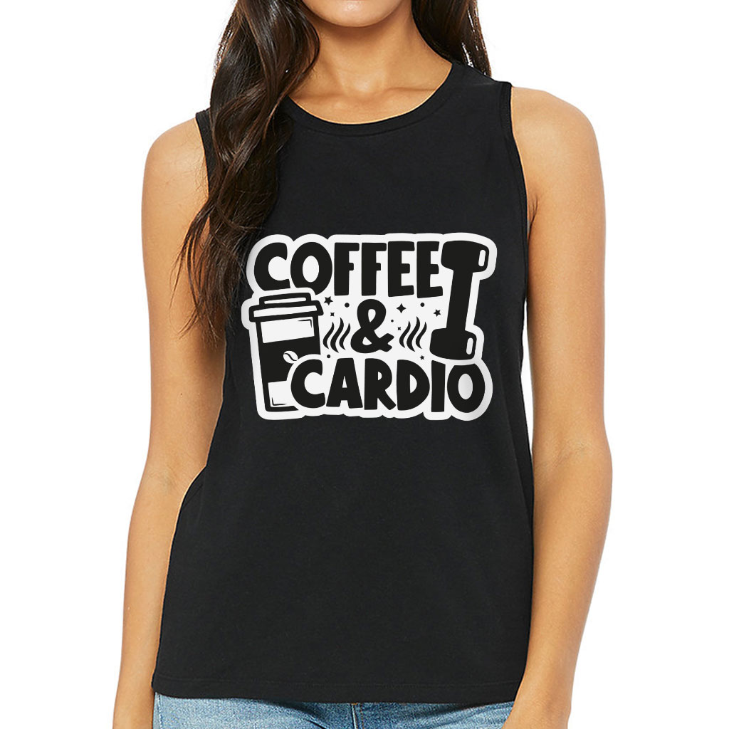 Coffee and Cardio Women’s Muscle Tank – Graphic Tank Top – Themed Workout Tank