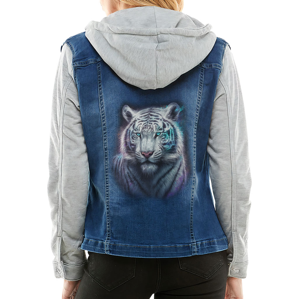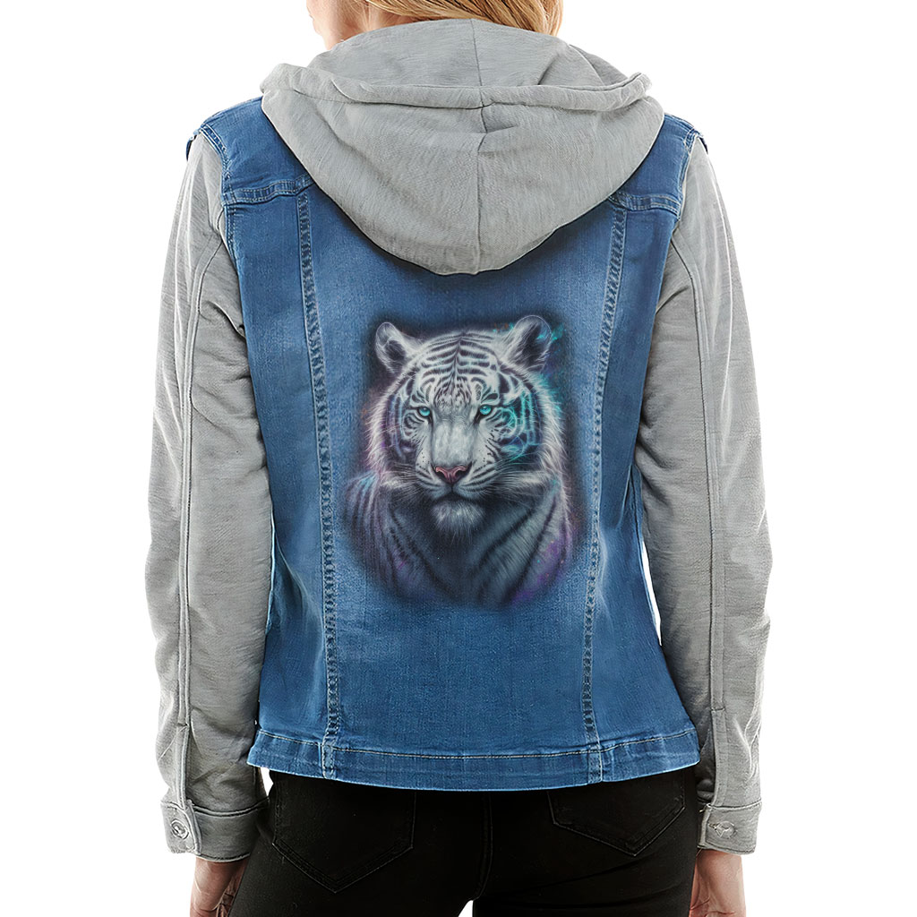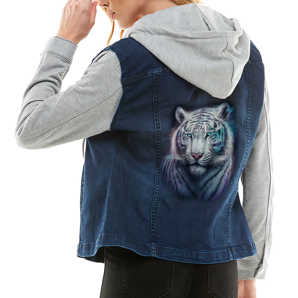 Cute Tiger Ladies’ Denim Jacket with Fleece Hoodie