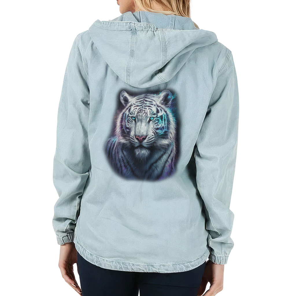 Cute Tiger Women’s Denim Jacket with Hoodie – Unique Gifts – Gifts for Tiger Lovers