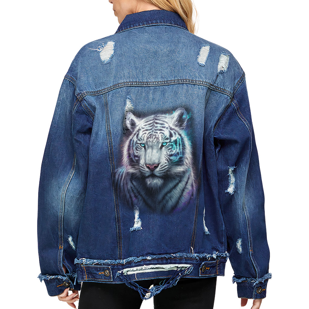 Constructed with fitting all shape bodies in mind, Cute Tiger Women’s Oversized Denim Jacket has a loose fit, lapel Collar, long sleeve, button closure. You can give this women oversized jean jacket as a gift to your mother, girlfriend, wife or others.