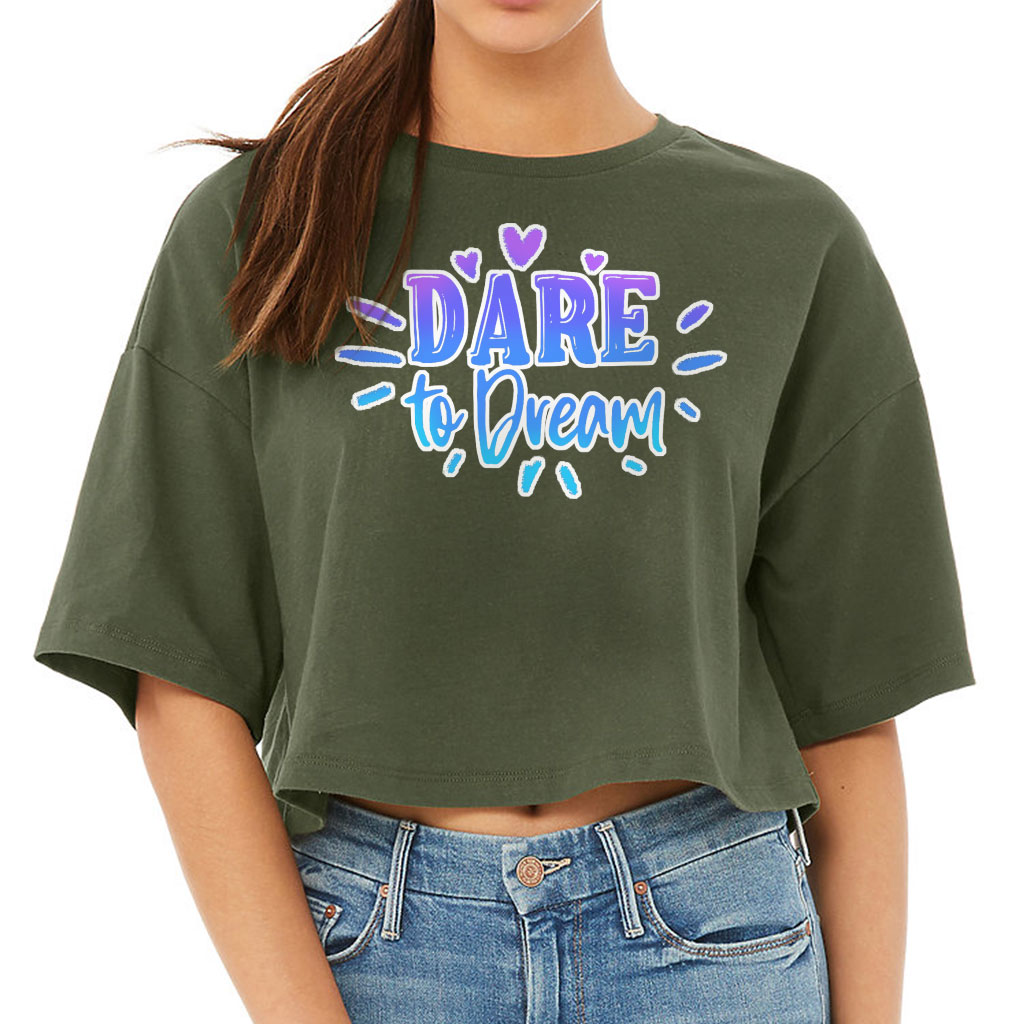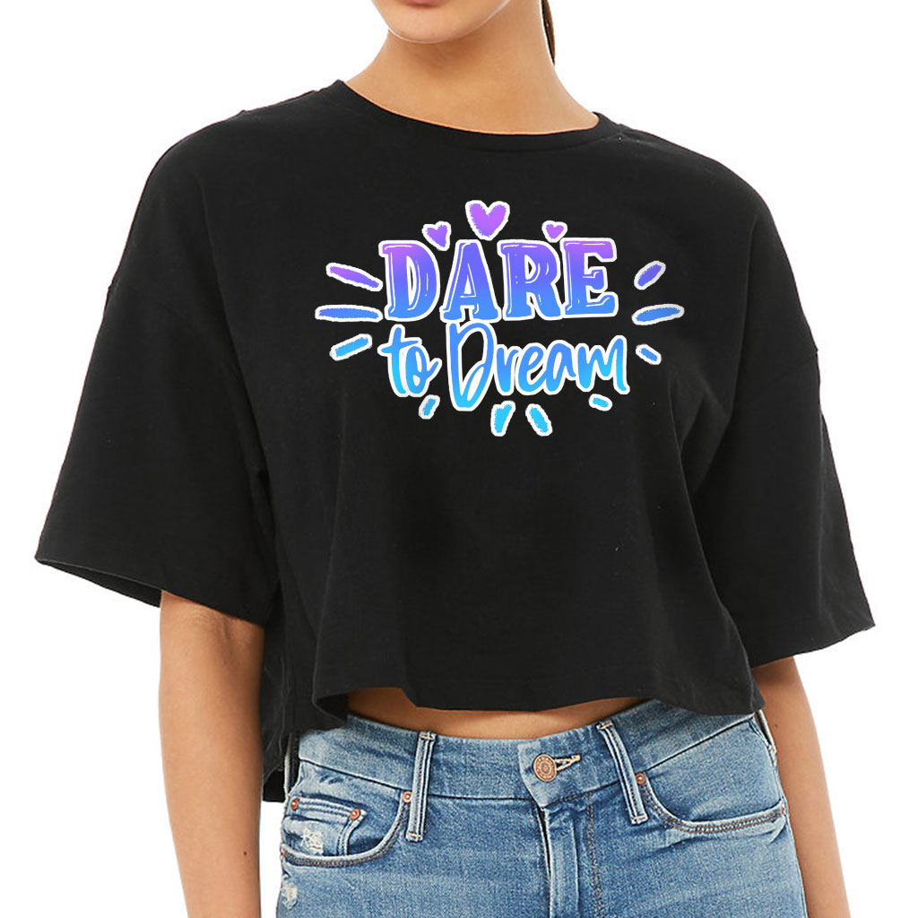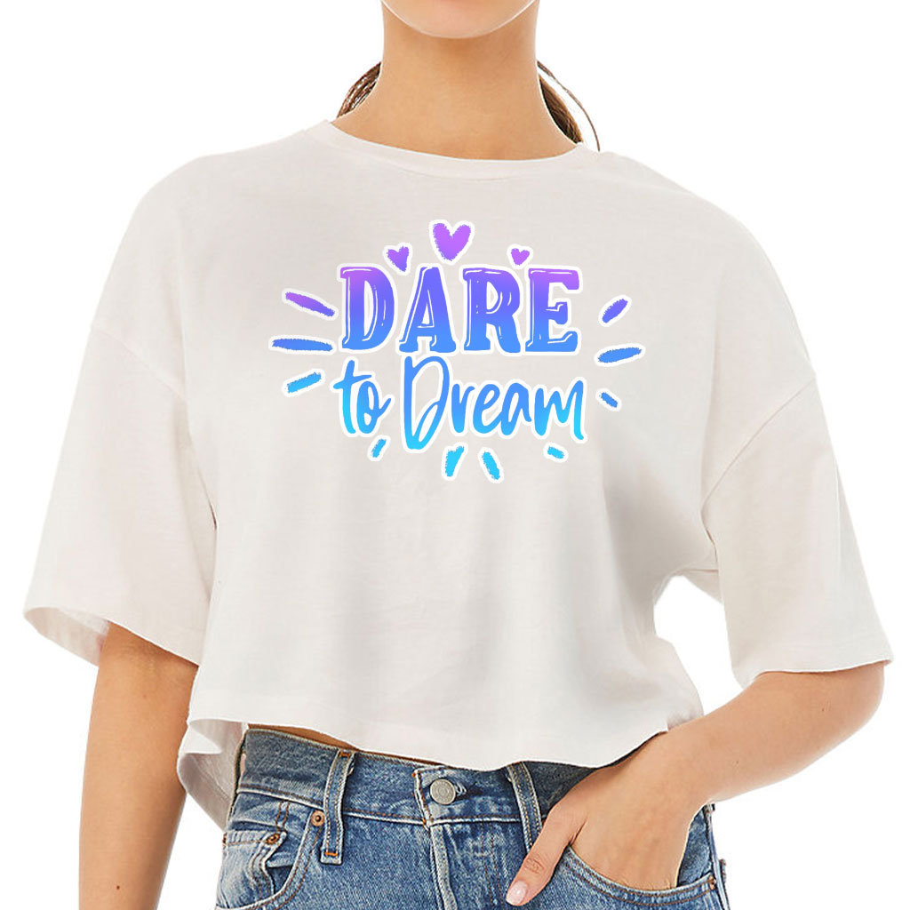 Dare to Dream Women’s Crop Tee Shirt is sure to make you stand out in a crowd! Match this shirt with shorts, jeans, leggings, sweatpants or skirts. Suitable for spring, summer, fall, winter, and all year.