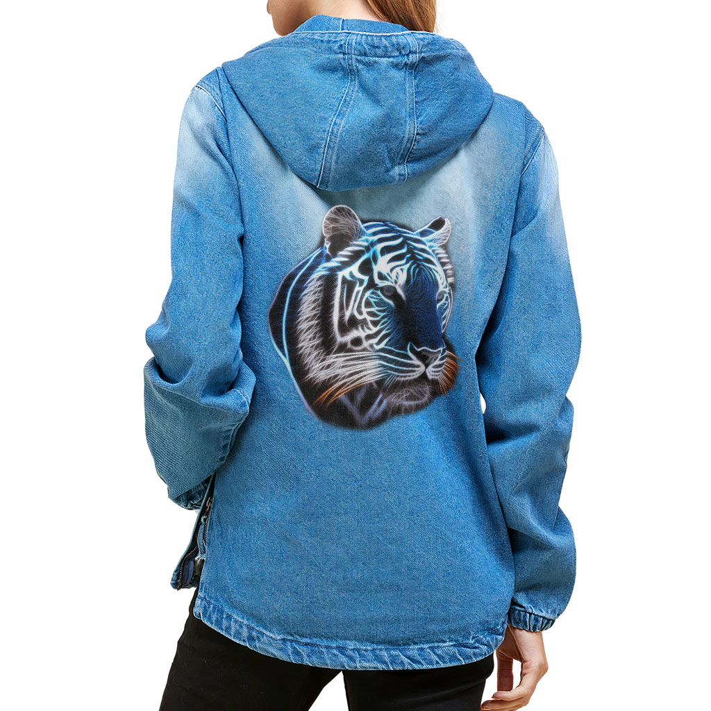 Cool Tiger Women’s Denim Jacket with Hoodie – Gifts for Women – Gifts for Animal Lovers