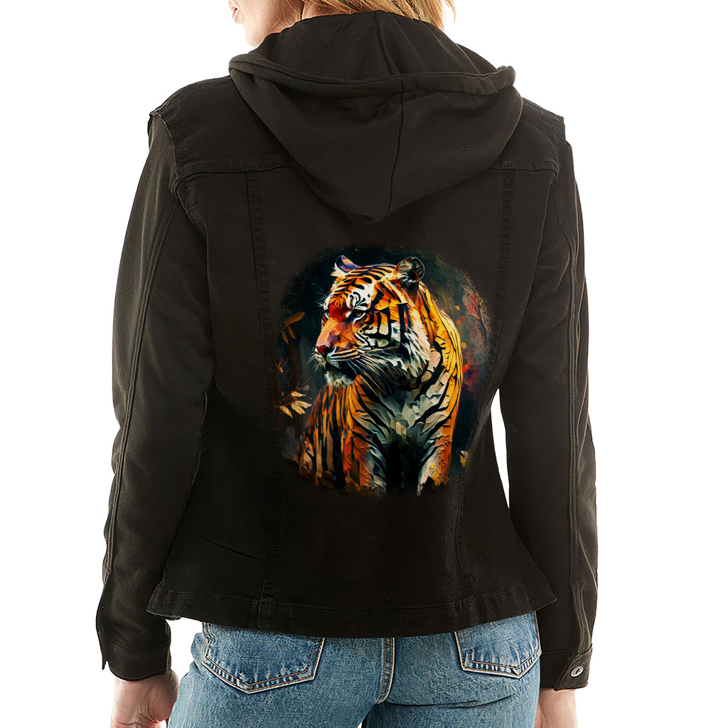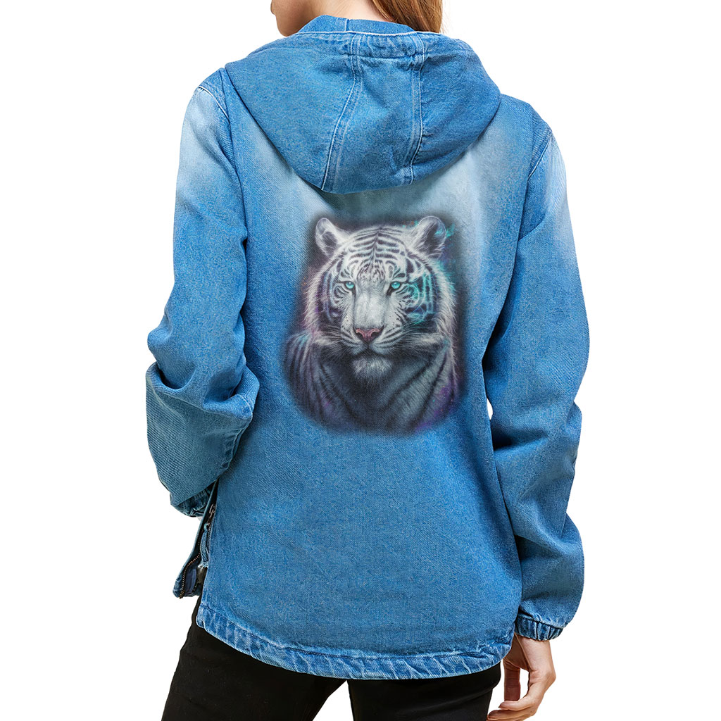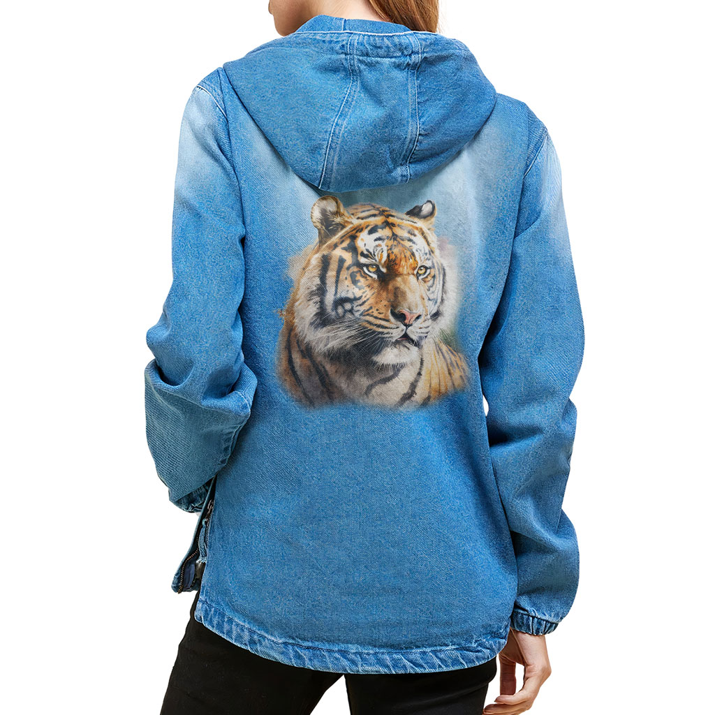 Tiger Painting Women’s Denim Jacket with Hoodie – Gifts for Her – Tiger Gifts