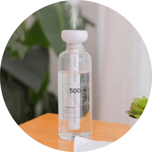Measuring 8.7” x 2.5” (L x W), our humidifier fits in standard water bottles for a portable humidifier for boosted comfort. Bring a light-and-mist show anywhere you go.