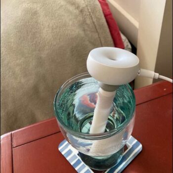 I find this donut humidifier ideal for travel because it can be kept in a carry on toiletry bag and be shortened to fit into a small cup/bottle. When it comes to cleaning, you do have to replace the wick filters every 1 or 2 months depending on your water quality, impurities that the filter absorbs and time of daily use. If you're looking for a small humidifier without having to replace the filter, this would be ideal for you. In addition, you can't add essential oils for aromatherapy when using this as it can block the atomizer and prevent it from misting.