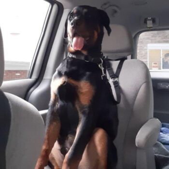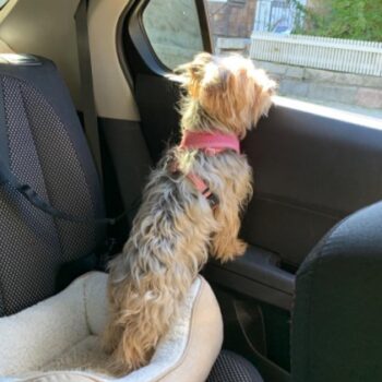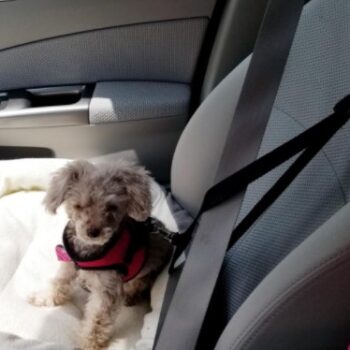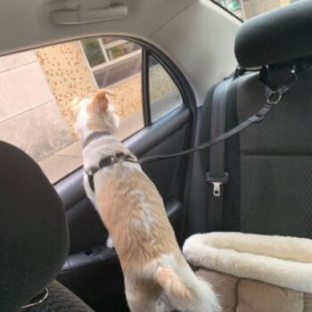I love this. I just adopted a 3 year old mix breed. He wants to be on my lap at all times. This isn’t safe when I drive so we now have a system. He gets in the backseat. I put his harness on and hook it to his “seat belt”. This goes securely around the headrest and keeps him in the backseat. It also keeps him safe from sudden stops. Last week while driving an old 2 lane highway a truck in oncoming traffic decided he was going to pass. The problem was that I was in my lane and he was heading straight for me. I had no where to go. I slammed on my brakes which allowed him the extra second to get back on his side of the road. Since Murphy had his harness and belt on he was safe and secure in his seat. Remember, DO NOT CONNECT THIS TO YOUR DOG’S COLLAR. ALWAYS USE SOME SORT OF HARNESS!!!