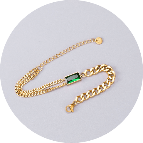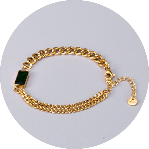 Want to add elegance and charm to your regular looks? Then this Emerald Charm Bracelet will become a wonderful addition to your jewelry collection! It is a graceful and unique accessory, perfect for any occasion.