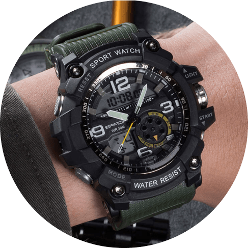 Delicate and versatile sports dial, compact case, high-quality analog-digital display and design suitable for outdoor activities, traveling and sports. Fits daily workwear.