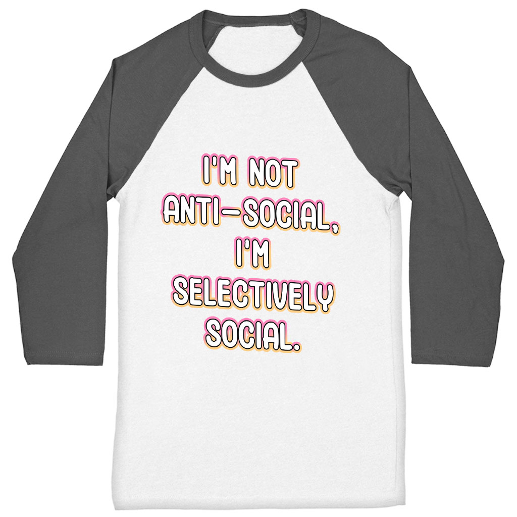 I’m Not Anti-social Baseball T-Shirt is proudly made with 7x less water than average manufacturers,