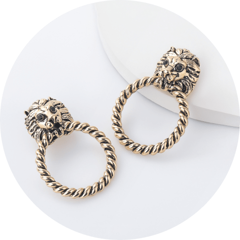 The eccentric shape of the earrings together with their exquisite details will add the ultimate modern touch to your regular looks. Be brave as a lion!