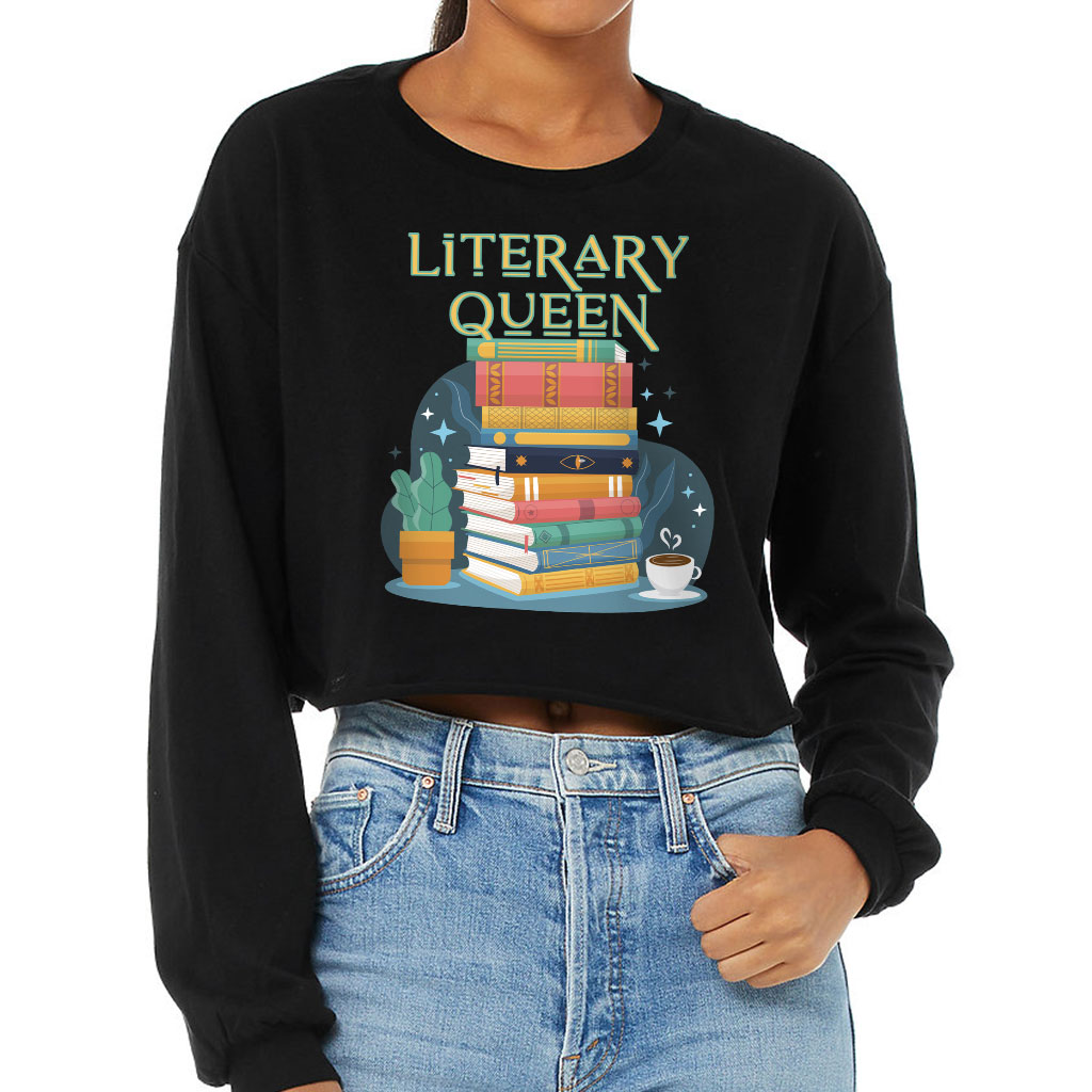 Literary Cropped Long Sleeve T-Shirt – Book Themed Women’s T-Shirt – Printed Long Sleeve Tee