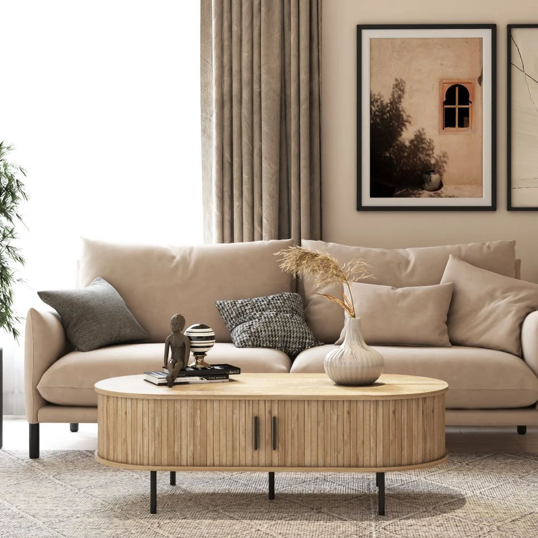 Our sofa, less than 2000mm in width, is a compact luxury that doesn’t compromise on space or style. Crafted with a resilient sponge filling, it offers a perfect balance between softness and support. The composite fabric upholstery is not only durable but also exudes a sophisticated aura. With its sleek design and contemporary appearance, this sofa embodies the aesthetics of modern Scandinavia and Morocco.
