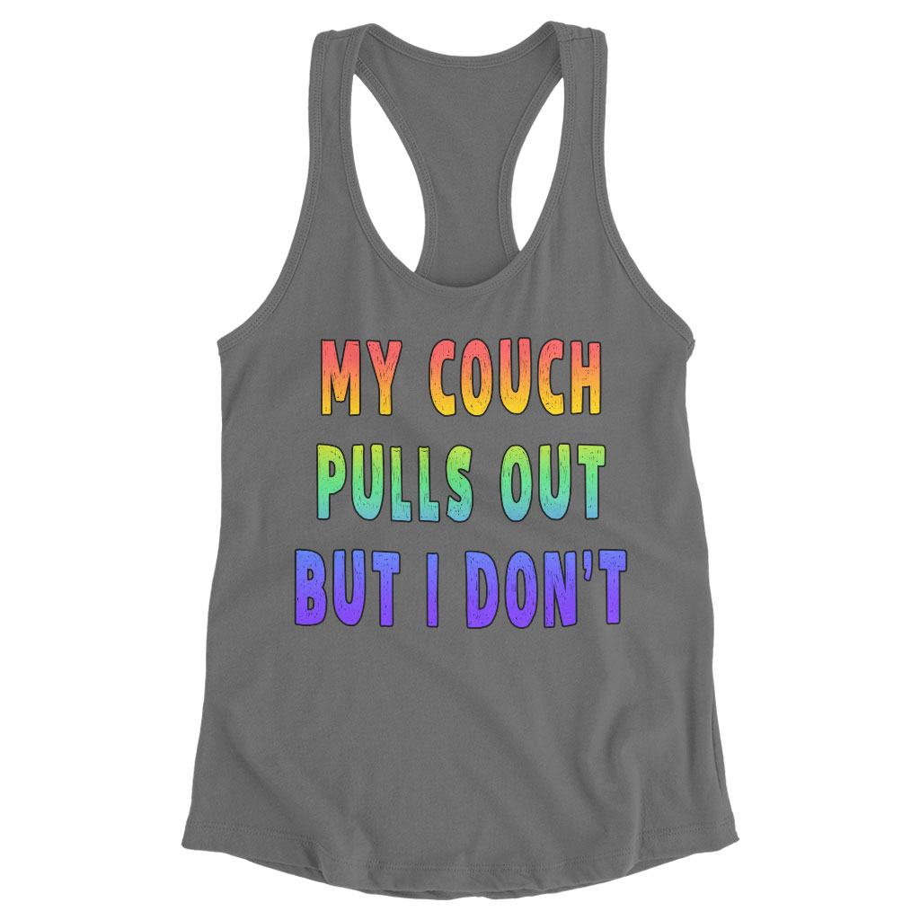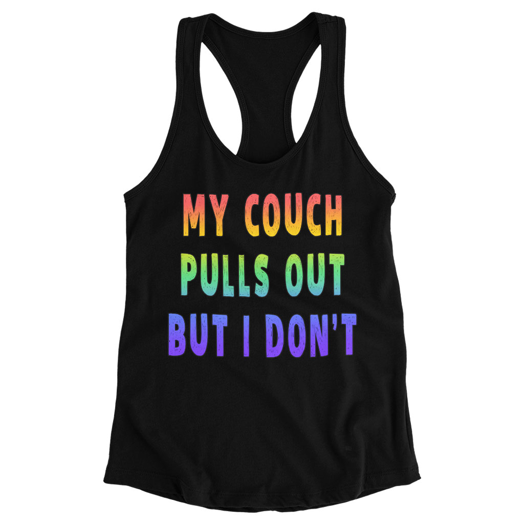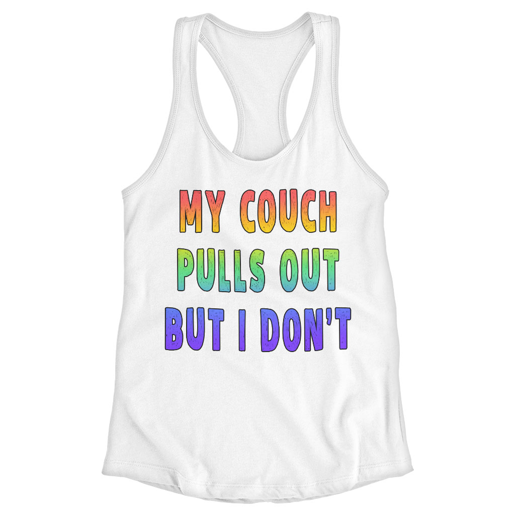 My Couch Pulls Out but I Don’t Racerback Tank is no ordinary piece of clothing. Its side-seamed detail and flatlock-finished hems provide a retail fit for clothing that’s true to size.