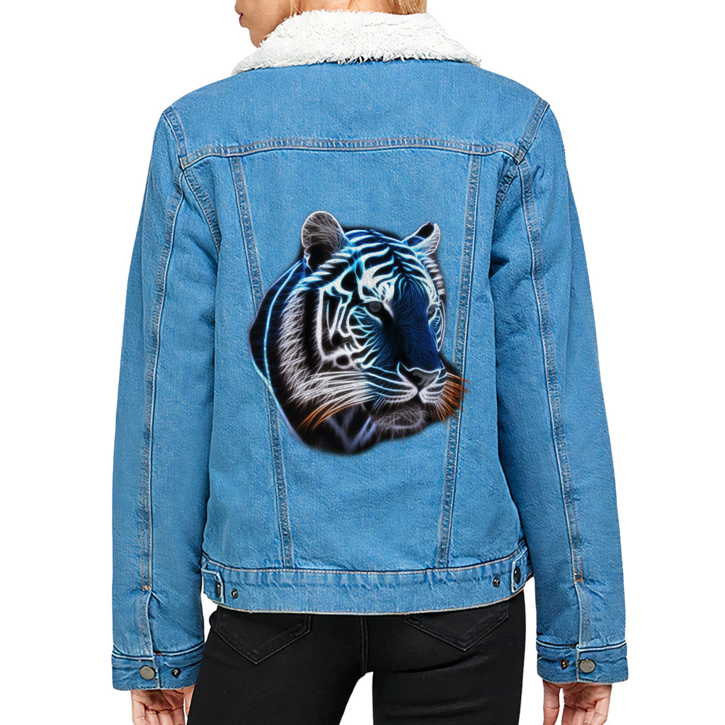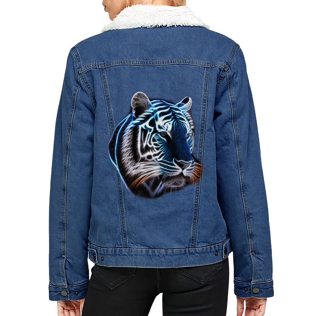 Neon Tiger Women’s Sherpa Denim Jacket – Gifts for Tiger Lovers – Tiger Gifts