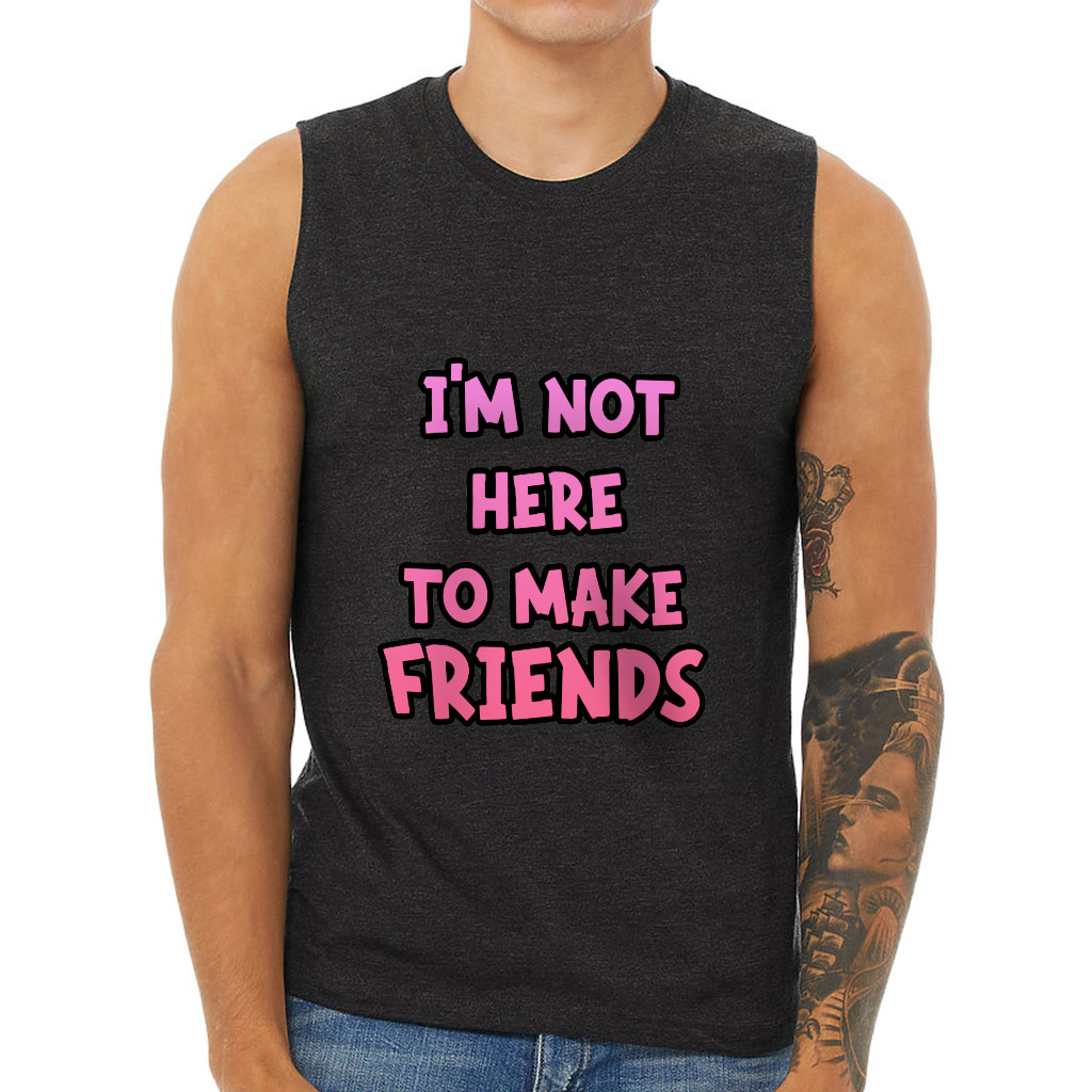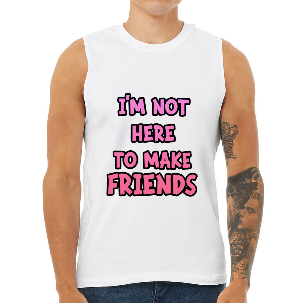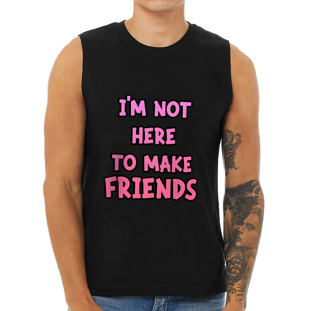Best gift for yourself or anyone you know. Not Here to Make Friends Men’s Sleeveless T-Shirt is perfect for Christmas, Birthdays, Retirement, daily wear, special occasions, or holidays. Wear this shirt and be awesome!