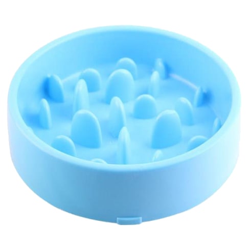 This pet bowl comes at a size of 7.9” x 2”. Color: modern bright blue. Amusing maze design.