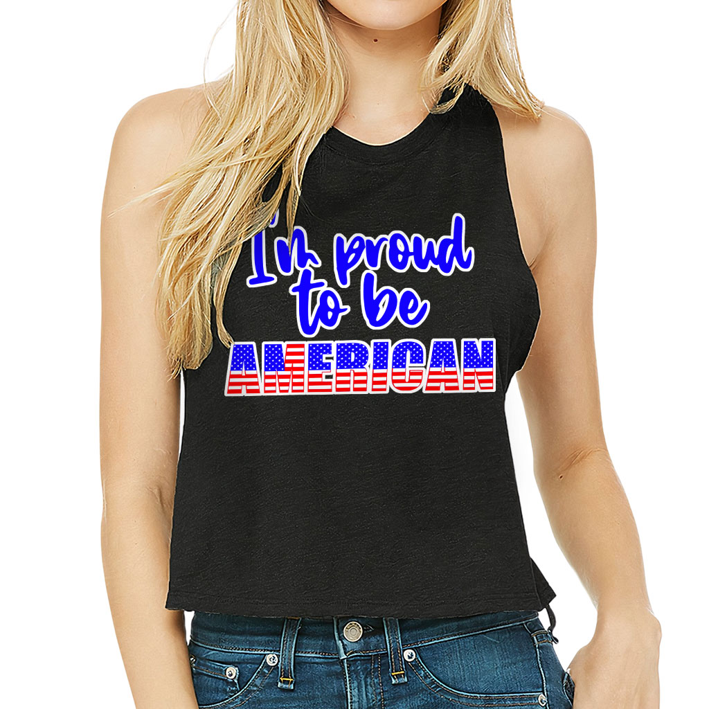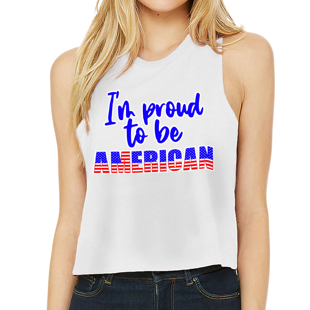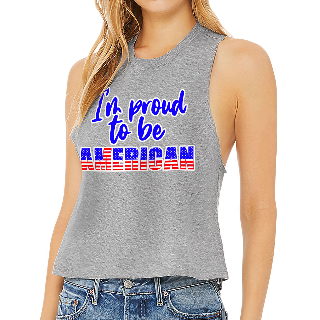 Proud to Be American Racerback Cropped Tank is made of high-quality materials. 52/48 Airlume combed and ring-spun cotton/polyester jersey. Athletic Heather is 90/10 Airlume combed and ring-spun cotton/polyester jersey.