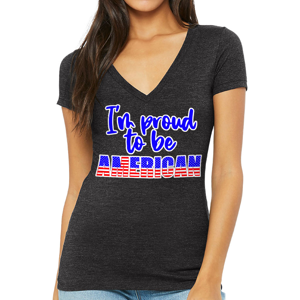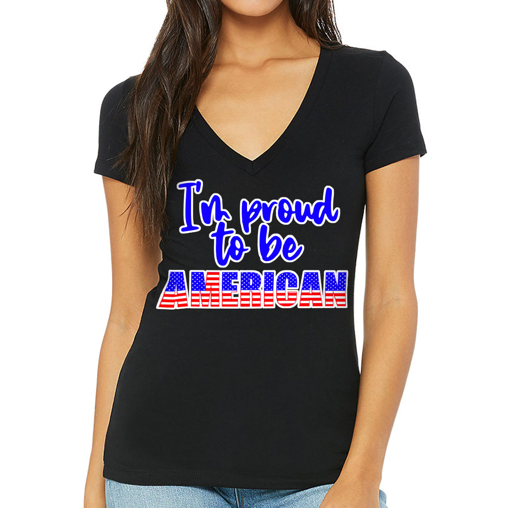 The fabric of our shirt is super soft, lightweight, breathable, and cozy. Proud to Be American Women’s V-Neck T-Shirt features a modern feminine fit, deep V-neck, short sleeves and superior Airlume combed and ring-spun cotton.