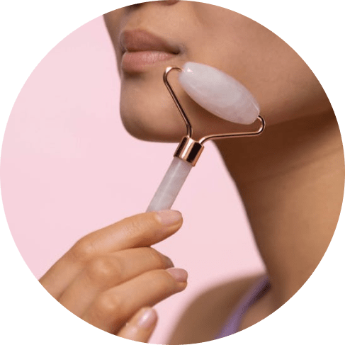 Rose quartz is known as a stone of universal love. A rose quartz roller and a guasha tool support lymphatic drainage to reduce the appearance of puffiness and wrinkles. It supports the renewal of skin cells as well.
