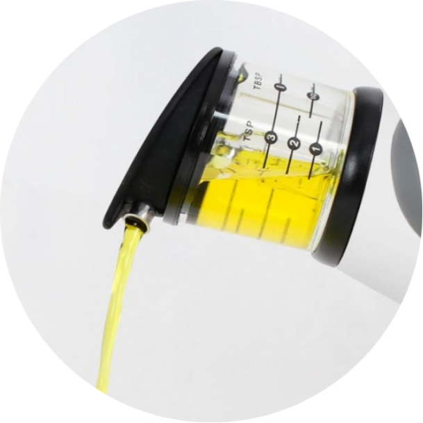 There’s nothing more wasteful than accidentally pouring out a dollop of oil that’s way more than you need. When an excess of oil is poured, you either have to use it with the food you’re cooking (which can lead to burning) or pour some of it out (which is wasteful). Our Scaled Oil Dispenser makes measuring the amount of oil you need much easier, with a printed scale chamber atop the bottle for easing eyeballing.