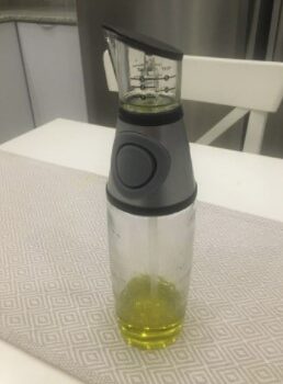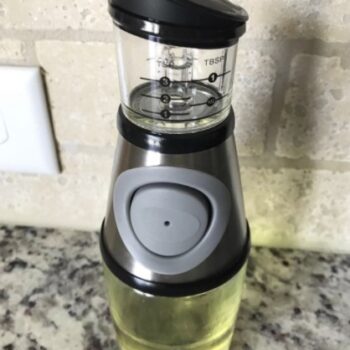 Love this dispenser! This purchase was inspired by Home Chef meal kids I’ve been getting for over two years and have guessed or caused extra dishes on the olive oil volume the entire time. Everything else comes pre-measured. This is SO much quicker and easier to use! I love that it can be cleaned in dishwasher, hate washing oily bottles. This time the stars aligned and I absolutely LOVE this product!!