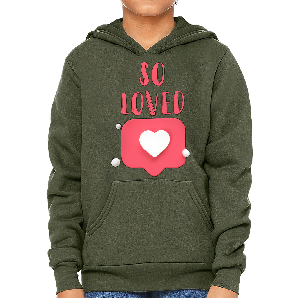 So Loved Kids’ Sponge Fleece Hoodie – Cute Kids’ Hoodie – Heart Print Hoodie for Kids