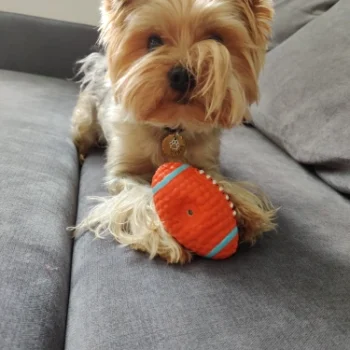 My York loves it! At first there was a smell of rubber, but soon the smell was weathered and it became normal. Quality toy, thank you.
