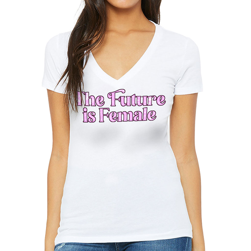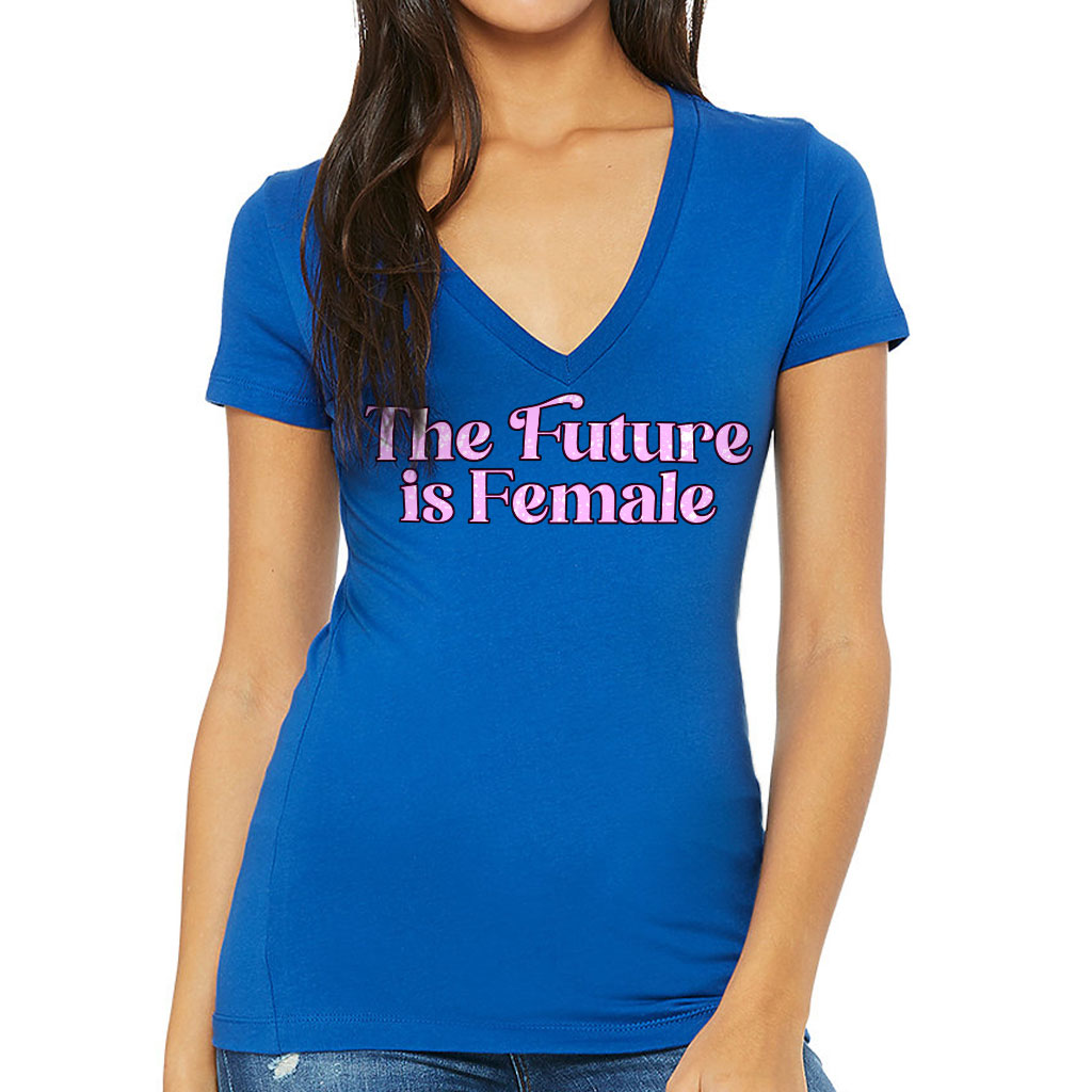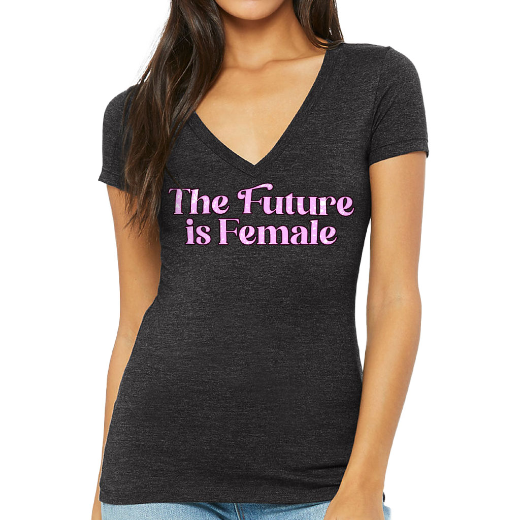 The fabric of our shirt is super soft, lightweight, breathable, and cozy. The Future is Female Women’s V-Neck T-Shirt features a modern feminine fit, deep V-neck, short sleeves and superior Airlume combed and ring-spun cotton.
