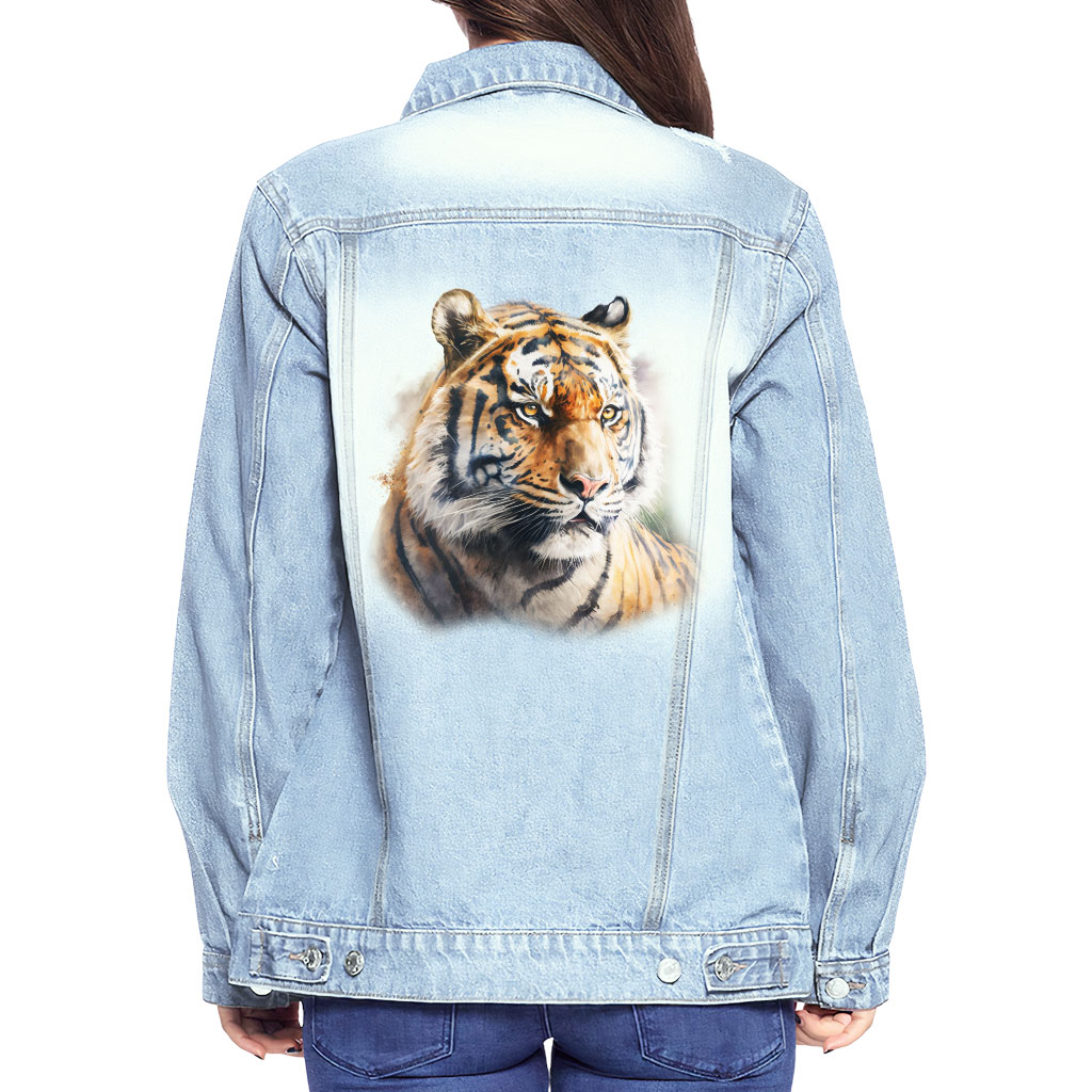Tiger Head Watercolor Women’s Casual Denim Jacket