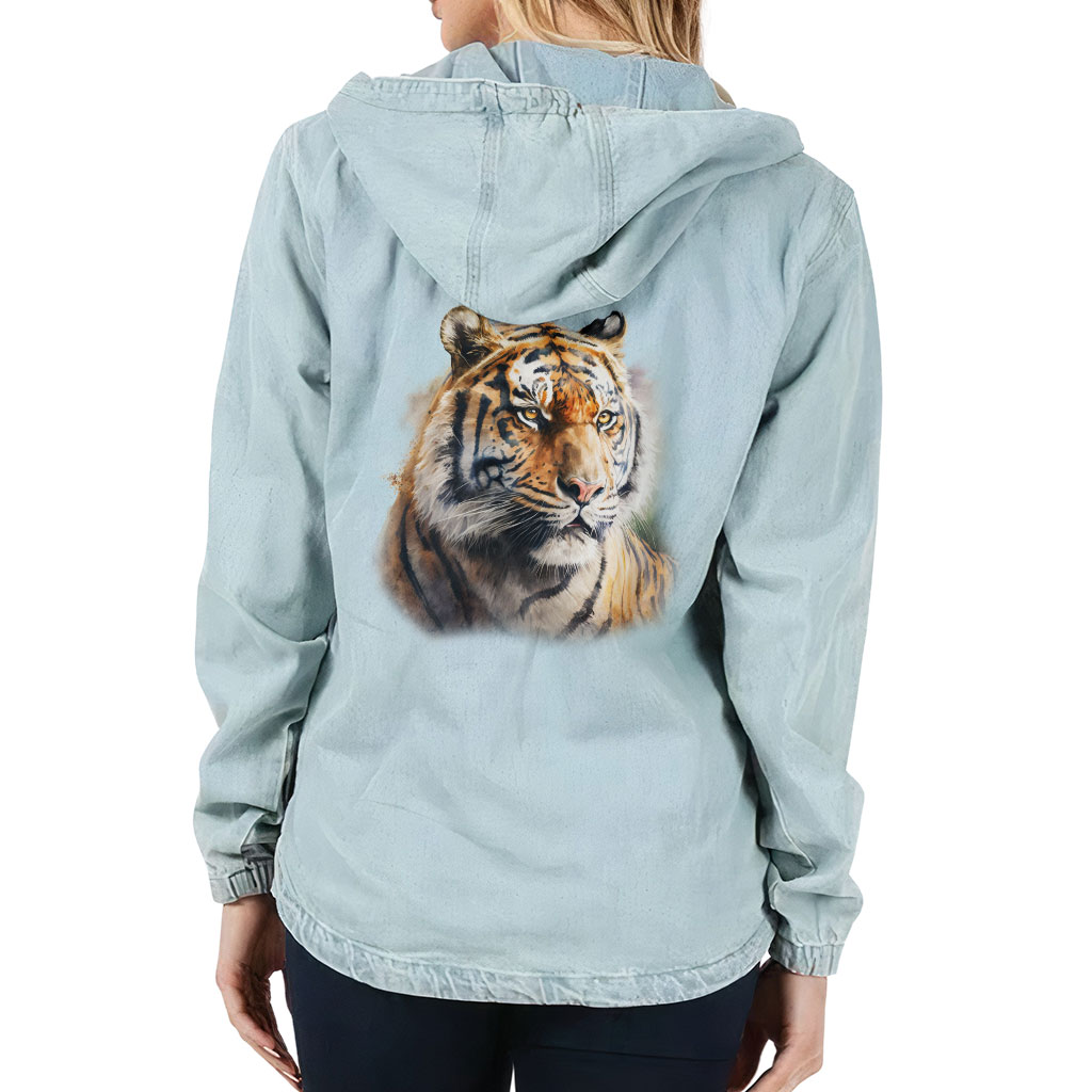 Tiger Head Watercolor Women’s Denim Jacket with Hoodie