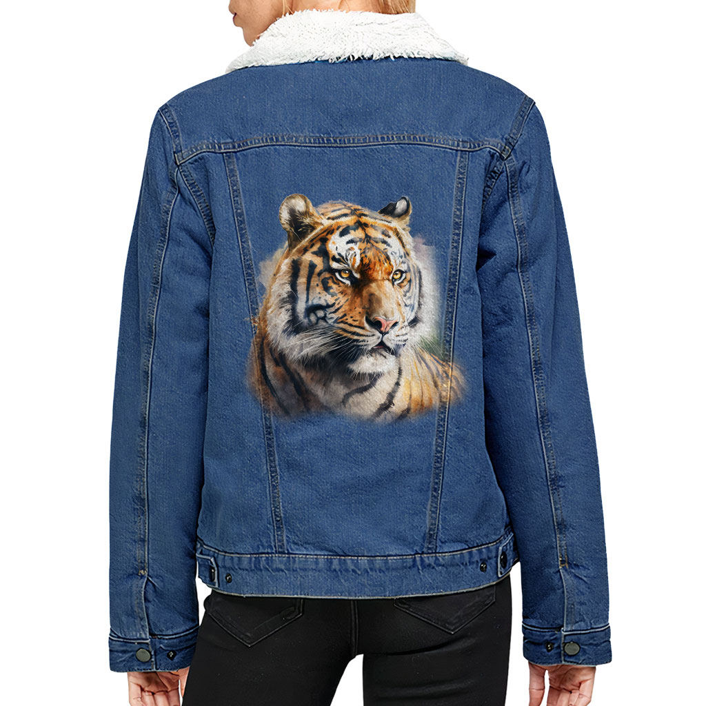 Tiger Head Watercolor Women’s Sherpa Denim Jacket