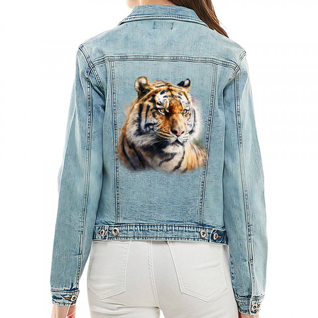 Tiger Portrait Women’s Sherpa Denim Jacket