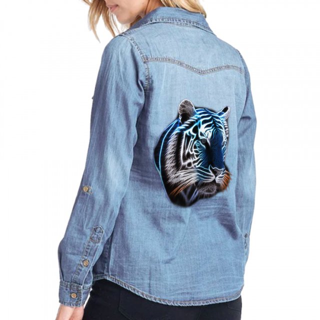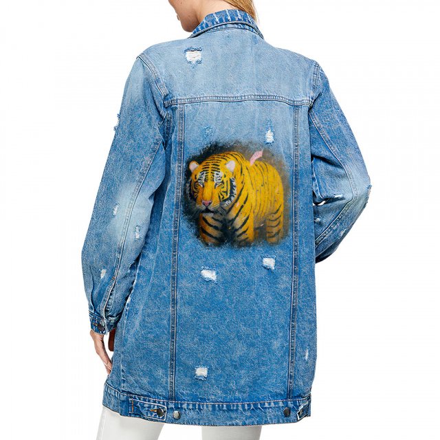 Tiger Print Ladies’ Denim Jacket with Fleece Hoodie