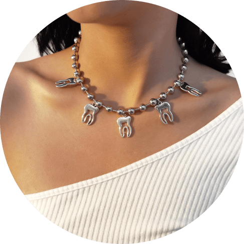 The striking design of the ball chain together with the stunning tooth pendants will add the ultimate modern touch to your regular outfits.