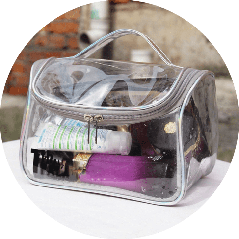 This lovely cosmetic bag is made with durable, transparent PVC material and features a large zipper opening.