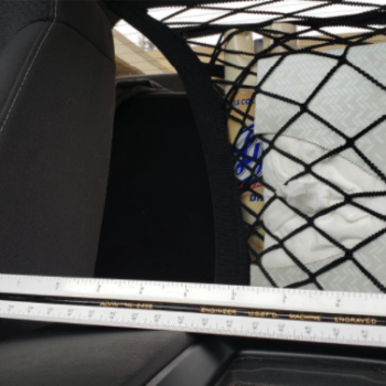 As you can see from the pictures, there's almost a 6 inch gap on both sides of the net which renders it almost useless for keeping my puppers at bay. I figure that with a normal-sized car or small SUV, the seat gap is not a problem as it is with mine. This product is stretched for all its worth in my truck (Silverado). I got tissue and a can of disinfectant in there, but it's t-i-g-h-t. I'm going to use it until it snaps, which looks like it could happen at any moment, honestly. I just hope it doesn't hit me in the process.