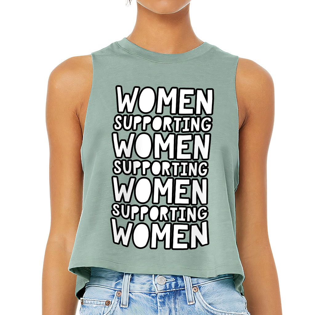 Women Supporting Women Racerback Cropped Tank is made of high-quality materials. 52/48 Airlume combed and ring-spun cotton/polyester jersey. Athletic Heather is 90/10 Airlume combed and ring-spun cotton/polyester jersey.