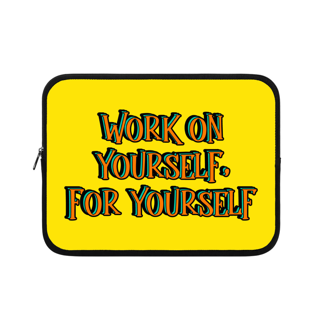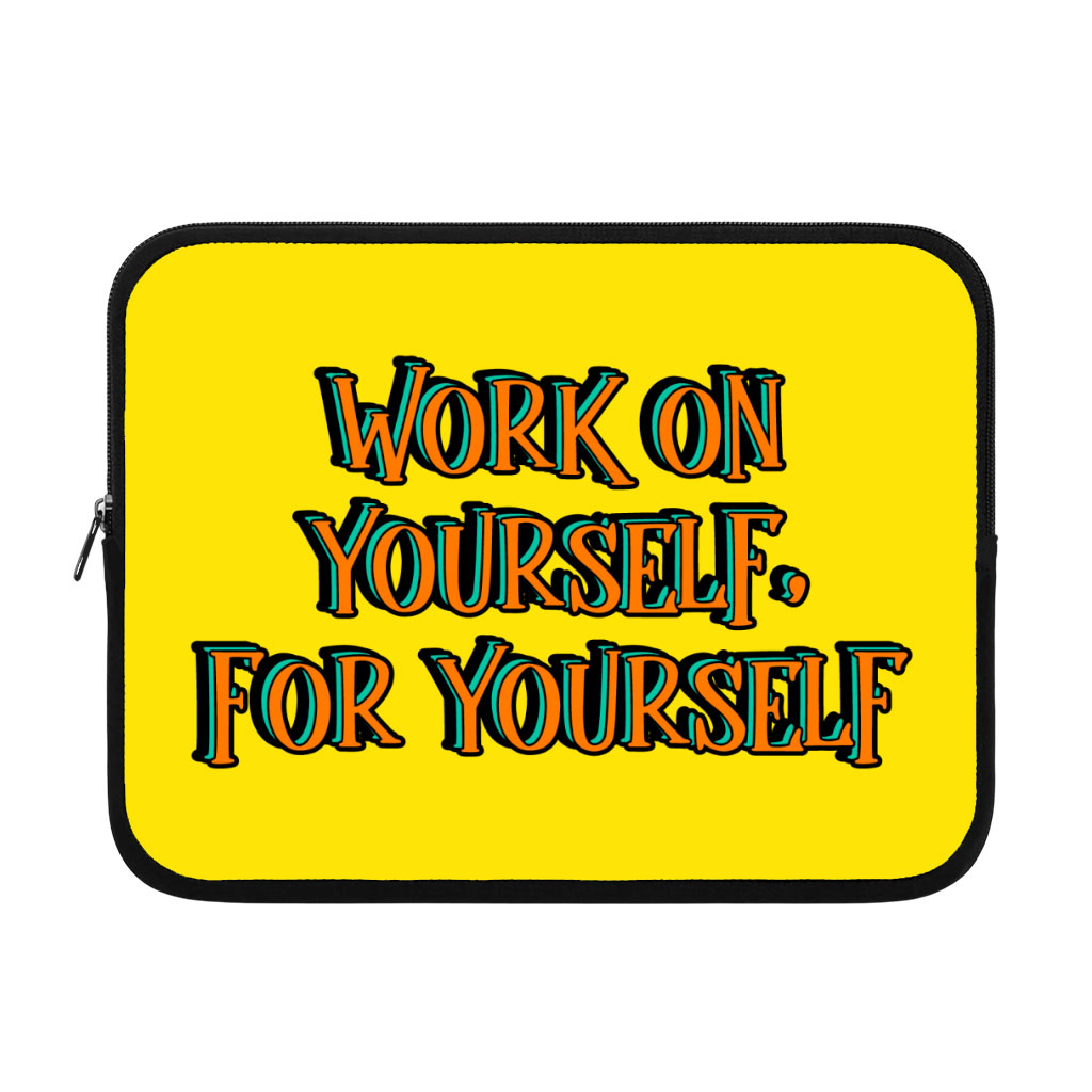 Work on Yourself iPad Sleeve is simple but meets your every need. Slim, portable, and lightweight to take alone, or slide into your briefcase, backpack, or any other bag, perfect for business, school, or travel.